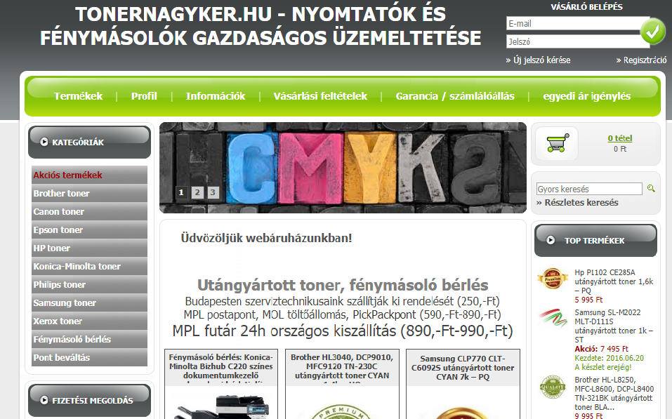 vásároljon nyomtatókazettát egyszerűen és kedvezménesen a tonernagyker online-boltjában
